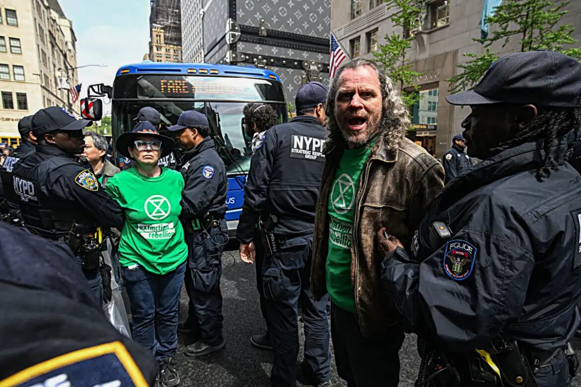 Sixteen outraged climate activists were cuffed outside of Trump Tower on Earth Day, Wednesday, after the group sat in the roadway outside of the president’s namesake building and blocked traffic over what they called a farcical DOJ investigation.