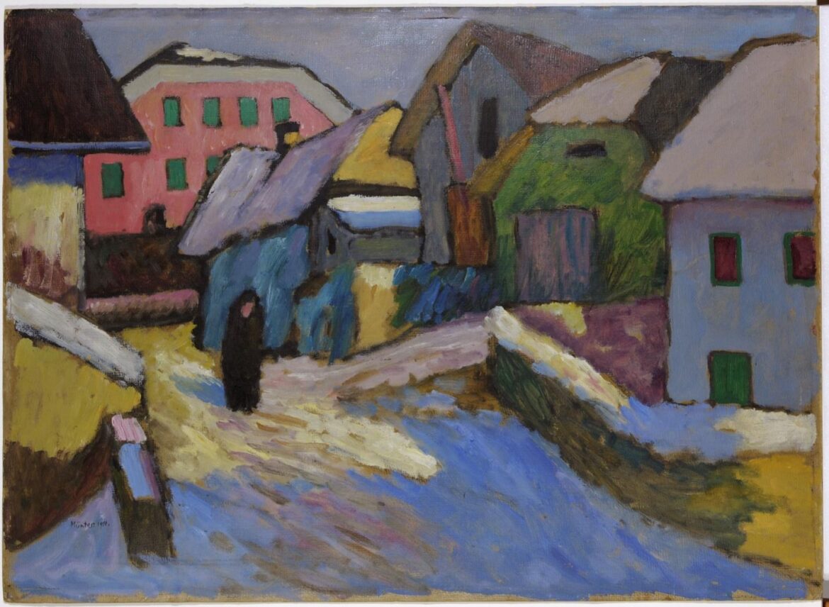 By now, we all know the too-common story of women artists overshadowed by their male partners: Leonora Carrington and Dorothea Tanning by Max Ernst, Jo Hopper by Edward Hopper, Sophie Taeuber-Arp by Jean Arp, Dora Maar and Françoise Gilot by Picasso, Camille Claudel by Rodin—the list goes on. Added to this lineage is Gabriele Münter (1877-1962), long framed in relation to Wassily Kandinsky (1866-1944). She has now, finally, been given her due in an exhibition at the Guggenheim, “Gabriele Münter: Contours of a World.”